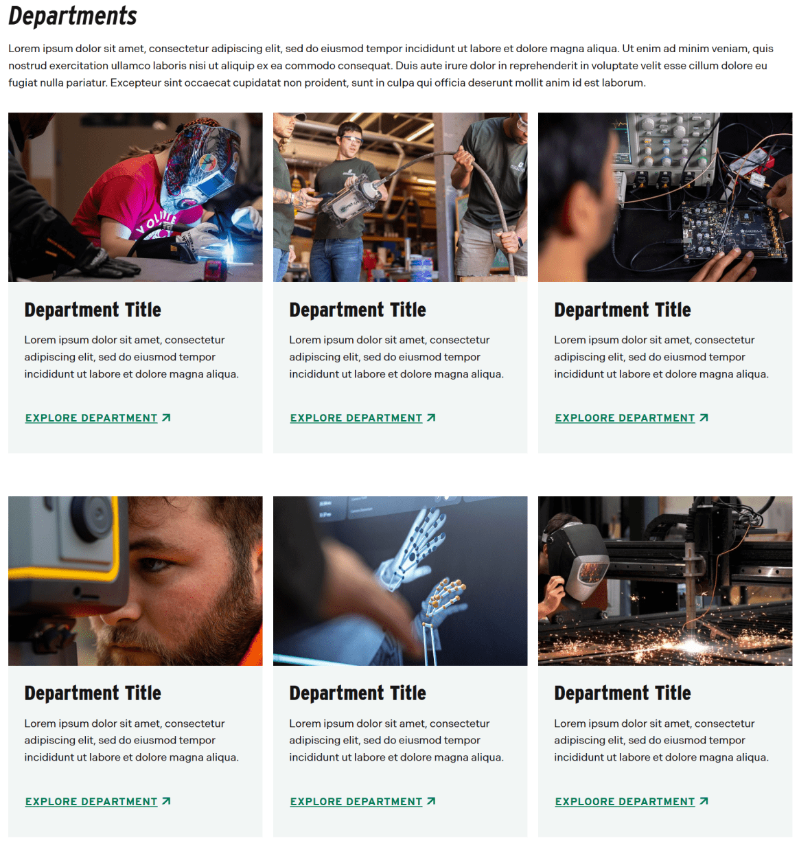 While individual images can support specific sections, the Image Gallery allows you to tell a broader visual story. With the ability to display up to 24 images, this component is ideal for showcasing environments, experiences, and moments that reflect the identity and energy of your department or program.